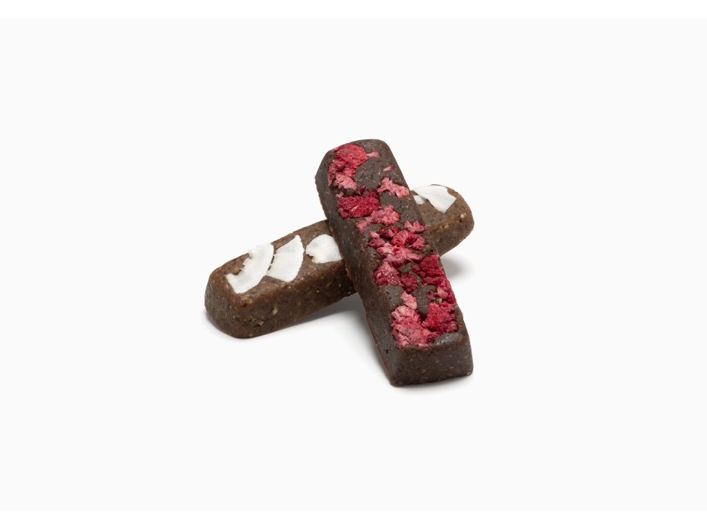 Malinová tyčinka – Exploze ovocné svěžesti. Lyofilizované maliny přinášejí intenzivní a šťavnatou ovocnou chuť s lehkým nádechem kyselosti. Dokonalý kontrast k datlové sladkosti, který probudí vaše chuťové pohárky.