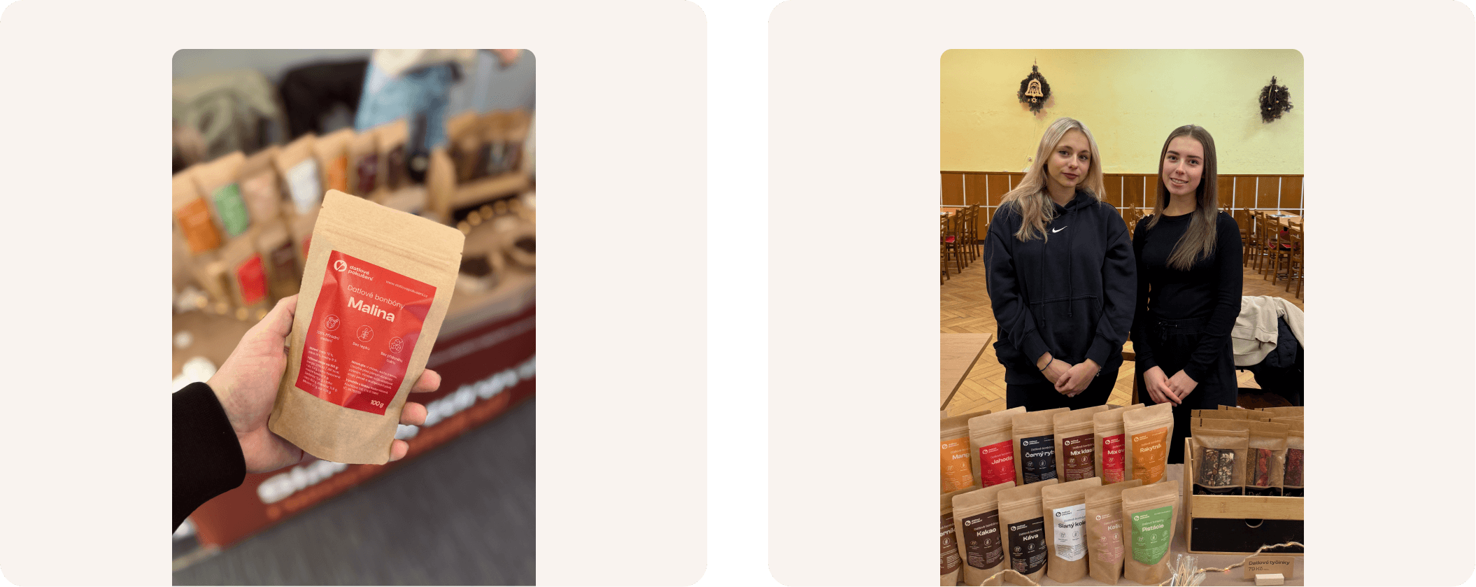Začínali jsme doslova na pár metrech čtverečních – malá provozovna o velikosti 6 m², kde se v jedné místnosti vyrábělo a menší chodbě skladovalo i expedovalo. Bylo to těžké a často chaotické, ale každá nová objednávka nám dodávala energii. Pamatujeme si na první vánoční sezónu – byla náročná, ale přinesla nám cenné zkušenosti a pocit, že to celé má smysl.